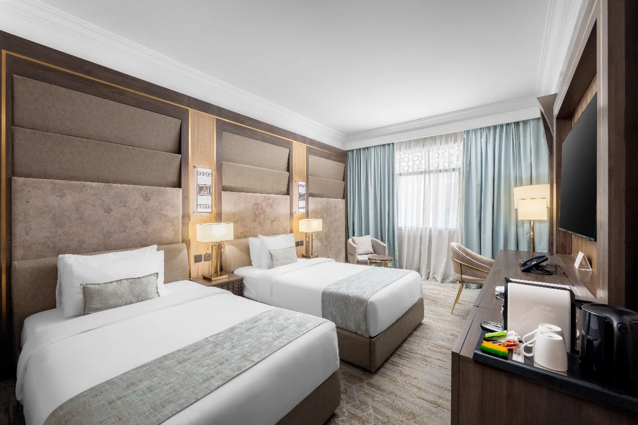 فندق دار الإيمان الحرم يُعد من أفخم فنادق المدينة المنورة، ويقع في موقع استثنائي على بُعد خطوات قليلة من بوابات المسجد النبوي الشريف، ما يجعله من أكثر الخيارات طلبًا للحجاج والمعتمرين. يتميّز الفندق بتصميمه الأنيق وخدماته الراقية من فئة خمس نجوم، حيث يوفّر غرفًا وأجنحة فاخرة مجهّزة بجميع وسائل الراحة الحديثة، إضافة إلى مطاعم متنوّعة، وخدمة استقبال على مدار الساعة، ومرافق مخصّصة للعائلات. يُعتبر دار الإيمان الحرم وجهة مثالية تجمع بين الفخامة والقرب من الحرم النبوي لتجربة إقامة روحانية مريحة ومتميزة.